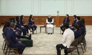 ಈ ಸಂವಾದದ ವೇಳೆ ಟೀಮ್ ಇಂಡಿಯಾ ಆಟಗಾರ್ತಿ ಹರ್ಲೀನ್ ಡಿಯೋಲ್ ಪ್ರಧಾನಿ ಮೋದಿ ಅವರ ಚರ್ಮಕಾಂತಿಯ ರಹಸ್ಯವನ್ನು ಪ್ರಶ್ನಿಸಿ ಗಮನ ಸೆಳೆದರು.