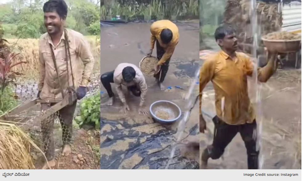 gowrishkothari ಹೆಸರಿನ ಎಕ್ಸ್ ಖಾತೆಯಲ್ಲಿ ಹಂಚಿಕೊಳ್ಳಲಾದ ಈ ವಿಡಿಯೋದಲ್ಲಿ ರೈತನ ಬದುಕಿನ ಸ್ಪಷ್ಟ ಚಿತ್ರಣ ಇಲ್ಲಿದೆ. ಮಳೆಯಿಂದ ಹಾಳಾದ ಬೆಳೆಯನ್ನು ಮನೆಯ ಅಂಗಳಕ್ಕೆ ತರುವುದನ್ನು ಕಾಣಬಹುದು. ಕಷ್ಟ ಪಟ್ಟು ಬೆವರು ಸುರಿಸಿ ಬೆಳೆದ ಬೆಳೆಯೂ ಹಾಳಾಗಿದ್ರೂ ಕೂಡ ಈ ರೈತರ ಮುಖದಲ್ಲಿ ಮಾತ್ರ ನಗು ಮಾಸದಿರುವುದನ್ನು ಕಾಣಬಹುದು. ಮನೆಯ ಅಂಗಳದಲ್ಲಿ ಭತ್ತವನ್ನು ಪೈರಿನಿಂದ ಬೇರ್ಪಡಿಸುತ್ತಿರುವ ಕೆಲಸದಲ್ಲಿ ರೈತರು ತೊಡಗಿಕೊಂಡಿದ್ದಾರೆ. ಆದರೆ, ಜೋರಾಗಿ ಸುರಿಯುತ್ತಿರುವ ಮಳೆಗೆ ಭತ್ತವೆಲ್ಲಾ ಒದ್ದೆಯಾಗಿ ನೀರಲ್ಲಿ ಕೊಚ್ಚಿಕೊಂಡು ಹೋಗುತ್ತಿದೆ. ಈ ಭತ್ತವನ್ನು ನೀರಿನಿಂದ ಬೇರ್ಪಡಿಸಿ ಬುಟ್ಟಿಯಲ್ಲಿ ತುಂಬಿಸಿರುತ್ತಿರುವುದನ್ನು ಕಾಣಬಹುದು.